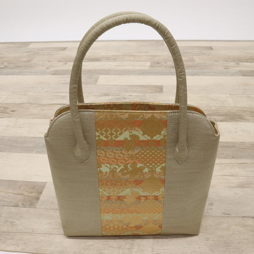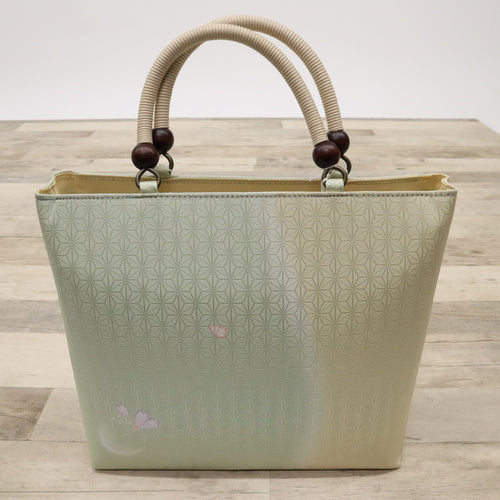 【新品】和装バッグ 淡いグリーン×ベージュ 麻の葉地紋 桜の花びら模様 着物に合わせ z7-19 リサイクル着物 訪問着 付下げ 結婚式 披露宴 パーティ 式典 祝事 お宮参り リユース 古着 アウトレット