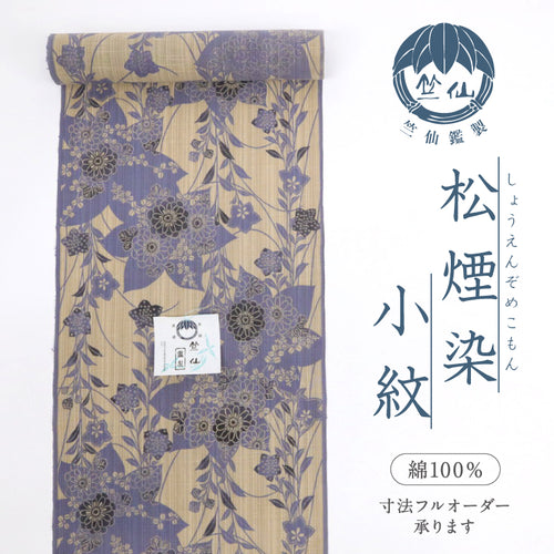 新品『竺仙』浴衣反物『松煙染小紋』桔梗に秋草模様 長さ12m 反巾38cm 藤色 お仕立て可能 木綿着物 和装 きもの 反25-82