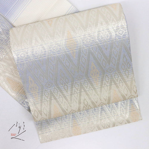 【新品】お仕立て上り 夏の名古屋帯 西陣『佐々木染織』カジュアル 白 長さ372.5cm 帯巾30.5cm 正絹着物 NS8-9