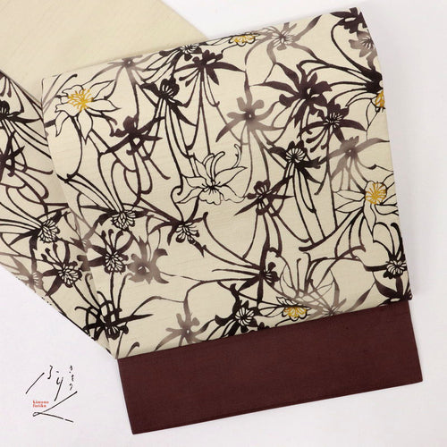【中古】名古屋帯 菊の花模様 濃茶色 カジュアル 普段着に 長さ353.5cm 帯巾30.5cm 正絹着物 NC12-9