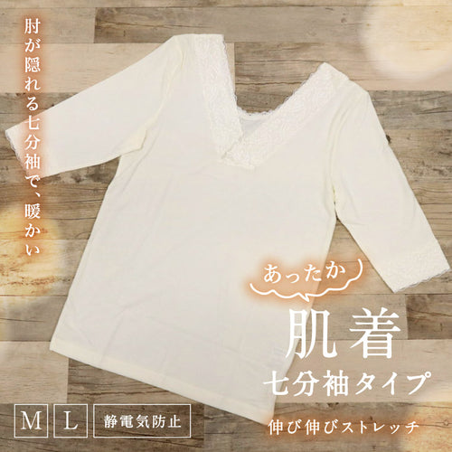 【 華暖 あったか 肌着 七分袖 】M L 七分袖 ストレッチ レース付き ホワイト 和装インナー 吸湿発熱 暖か繊維 ピチカ使用 肌着 着物 肌襦袢 静電気防止加工付 上下一体 着物 小紋 訪問着 付下げ 白 和装小物