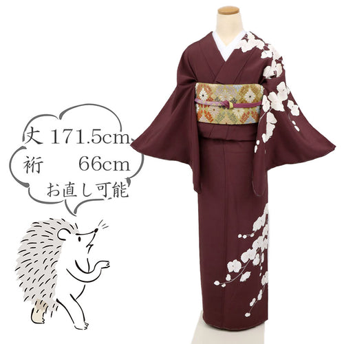 【中古】長尺 訪問着『寺島利男』胡蝶蘭の花 バーガンディー 略礼装 フォーマル 身丈171.5cm 裄丈66cm 袷正絹着物 HP4-15