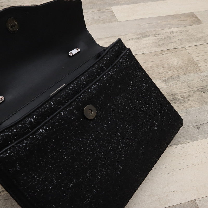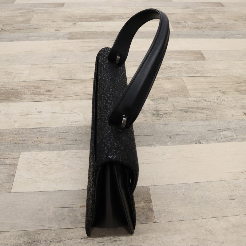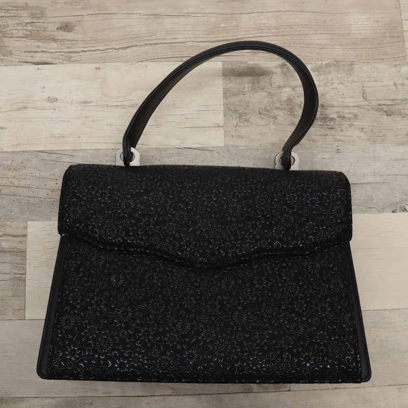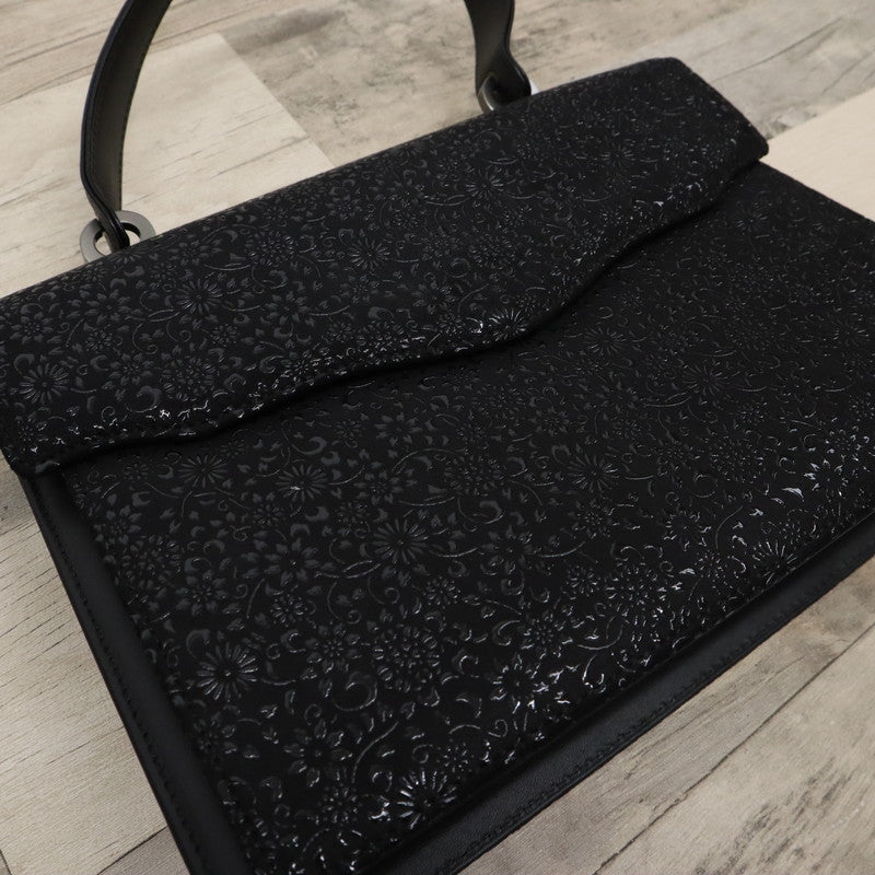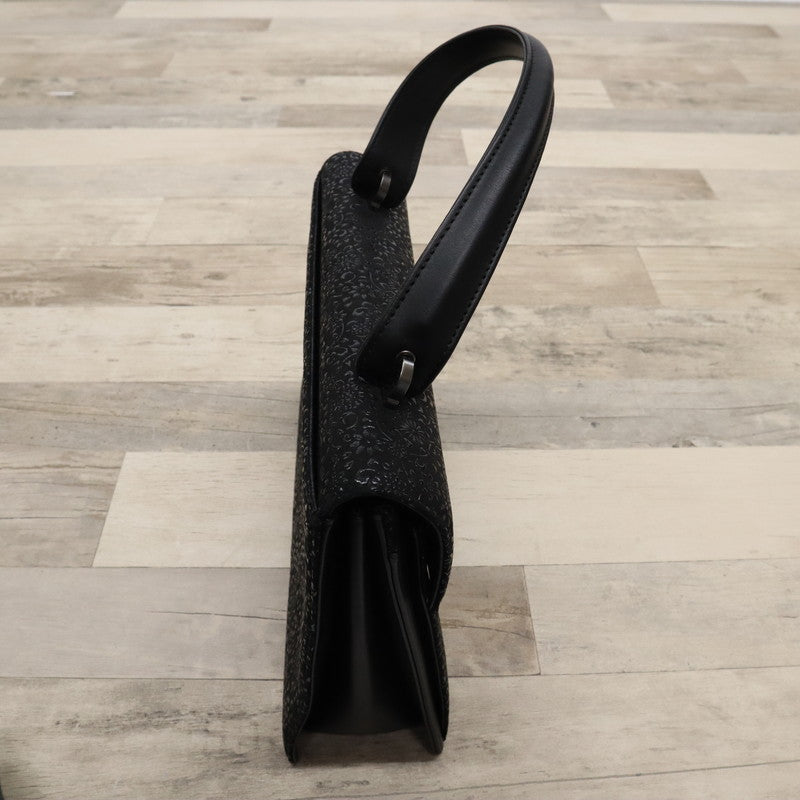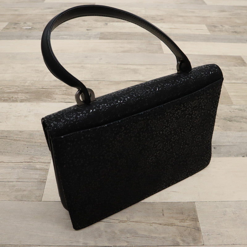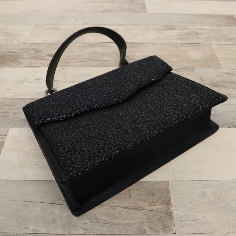 【中古】印傳屋 和装バッグ 黒鹿革×黒漆 変わり菊唐草 冠婚葬祭 着物に合わせ z4-36