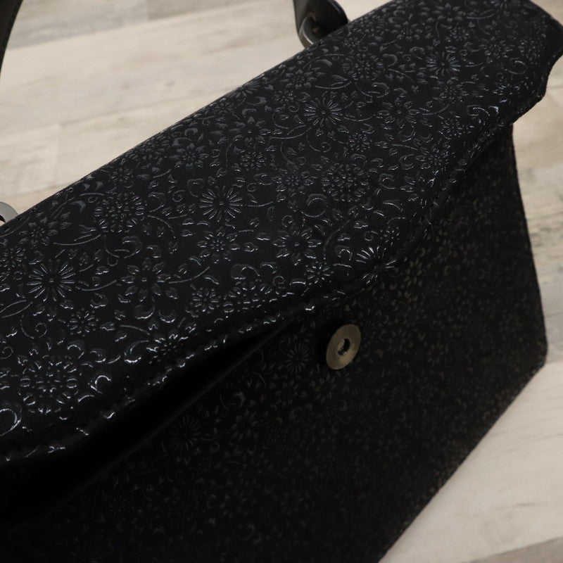 • 画像をギャラリービューアに読み込む, 【中古】印傳屋 和装バッグ 黒鹿革×黒漆 変わり菊唐草 冠婚葬祭 着物に合わせ z4-36