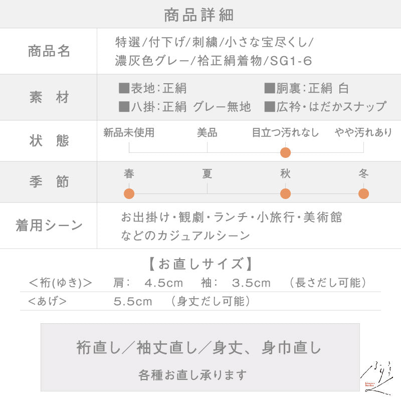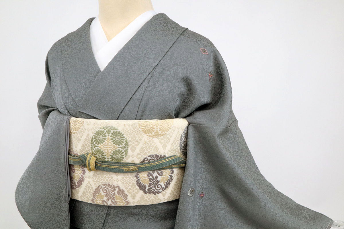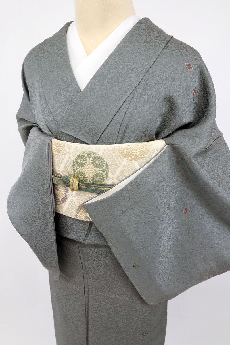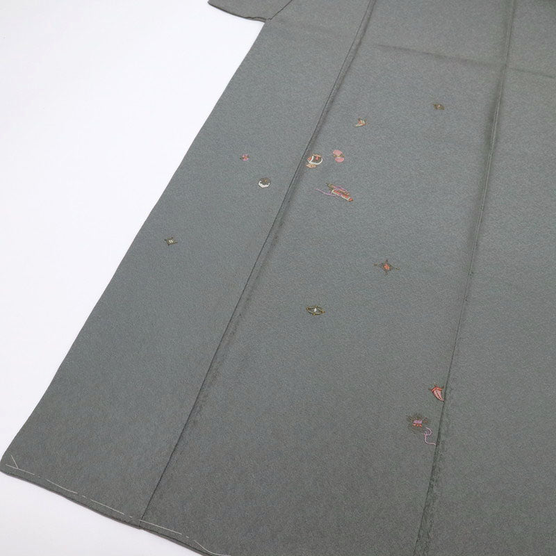 濃厚な灰色に小さな宝尽くしの小さな刺繍