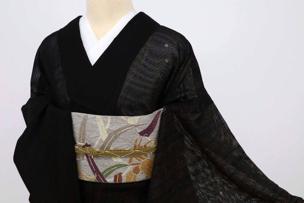 黒の紗に浮かぶ細やかな植物の縞と