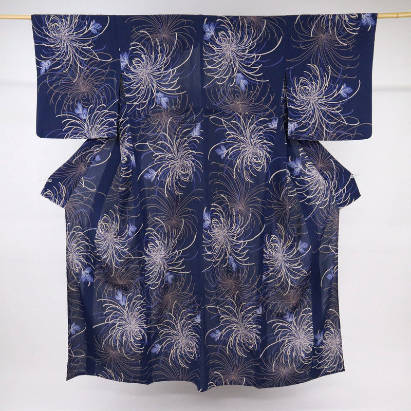 深い濃紺の地色に繊細な糸菊の花模様。
