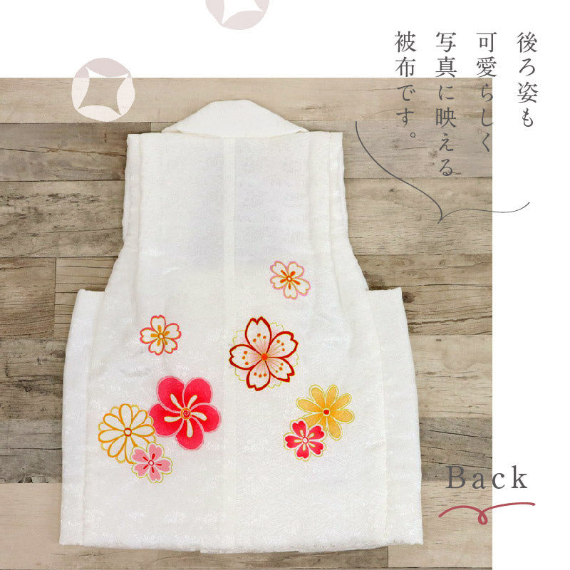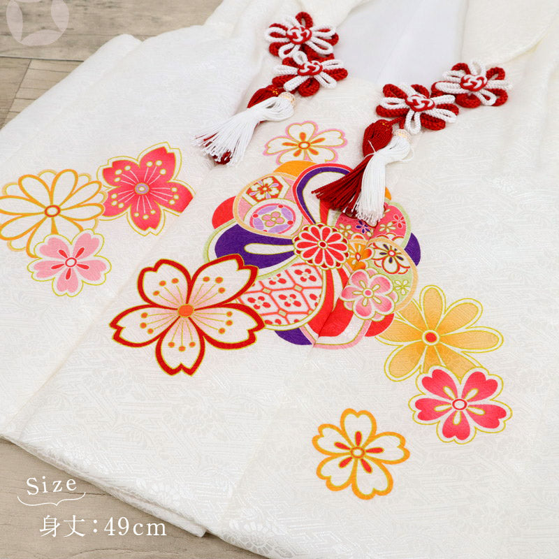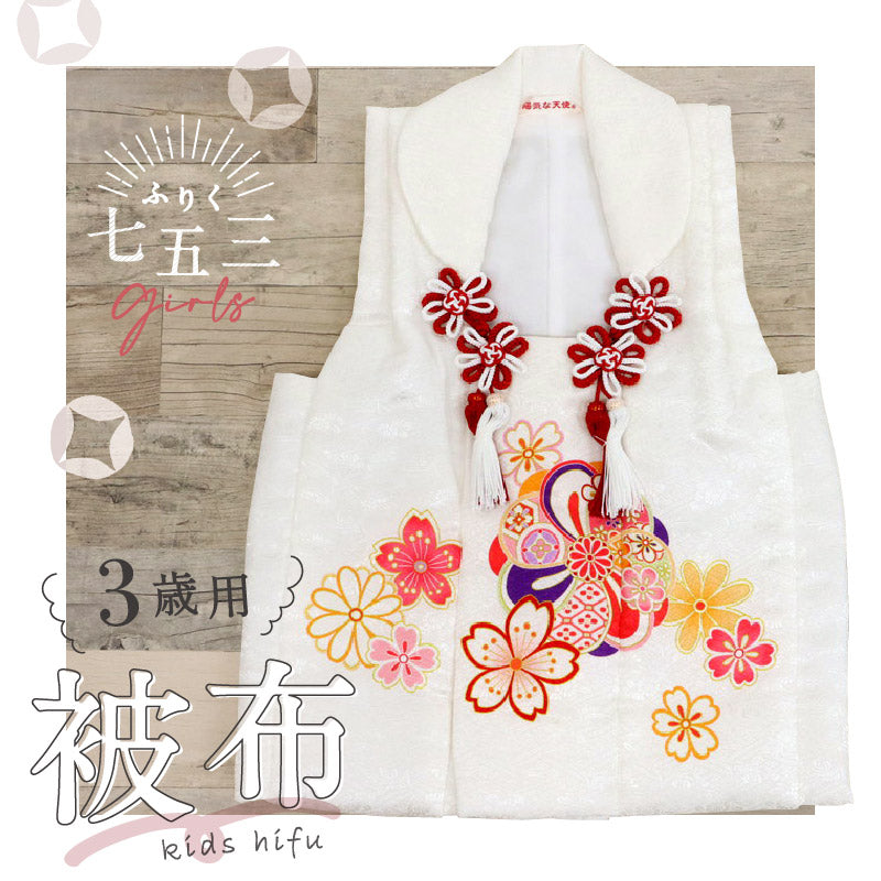 新品【 七五三 子供用 被布 白 ねじり梅 】2歳 3歳 着物 コート 飾り紐付き 中綿入り 菊 桜 羽織り 女の子 女児 正絹 日本製 お祝い ひな祭り お正月 節句 お祝着
