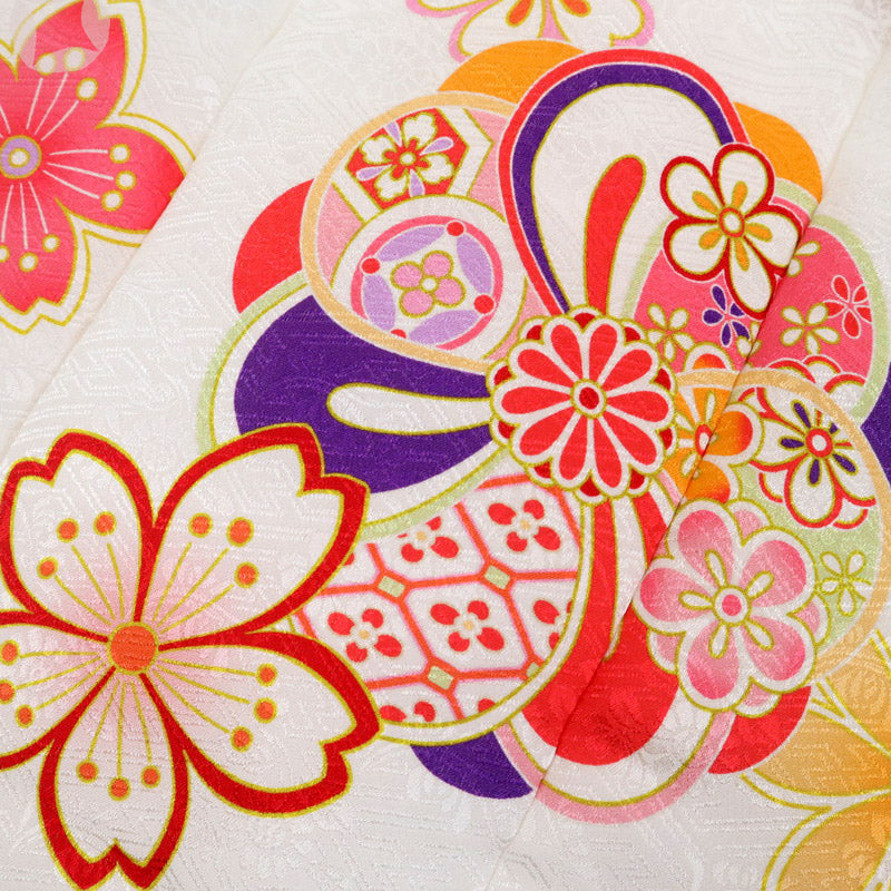 商品番号: 新品-七五三-子供用-被布-白-ねじり梅-2歳-3歳-着物-コート-飾り紐付き-中綿入り-菊-桜-羽織り-女の子-女児-正絹-日本製-お祝い-ひな祭り-お正月-節句-お祝着