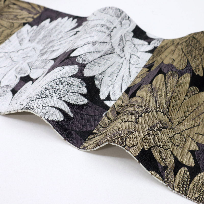 大きなマーガレットの花模様が黒の帯地に映えるお品です♪