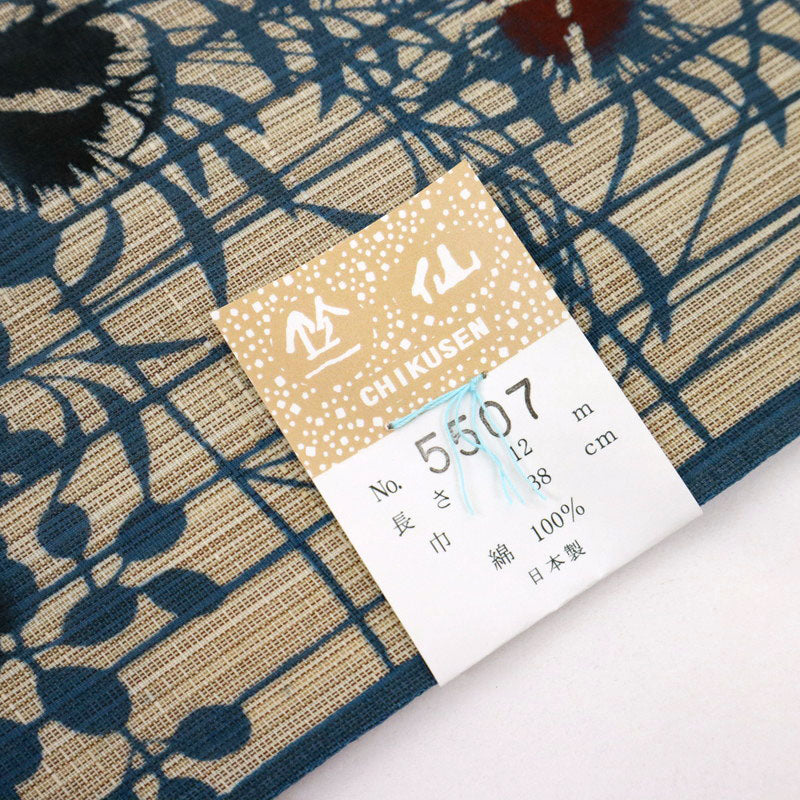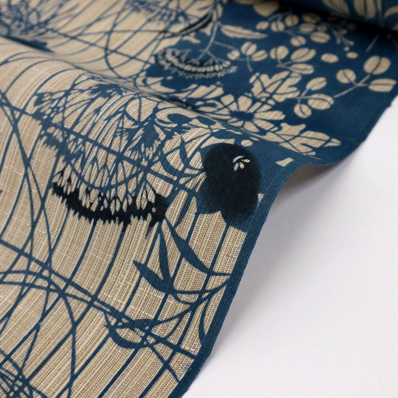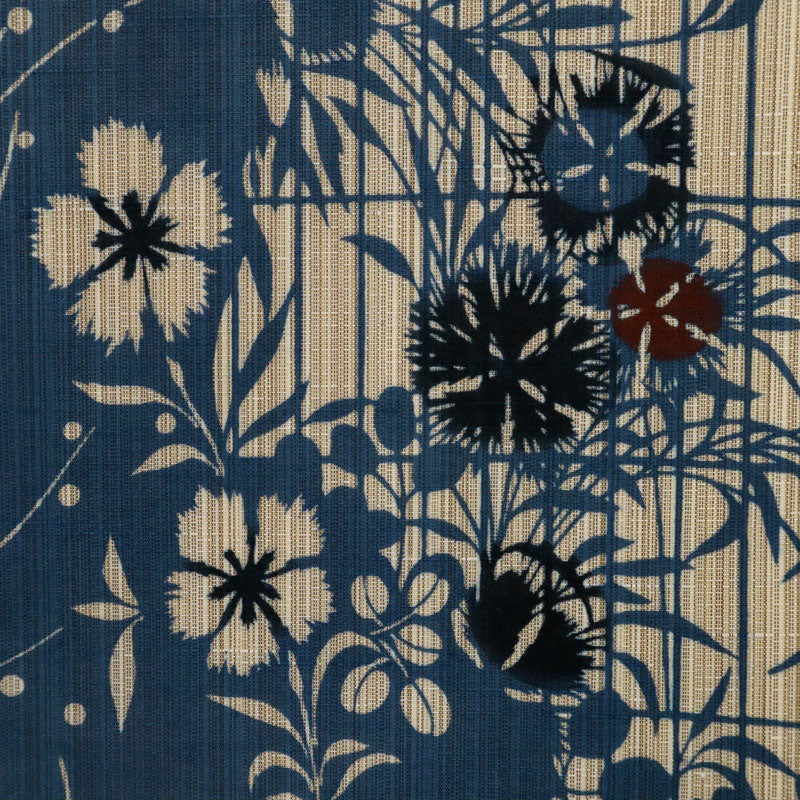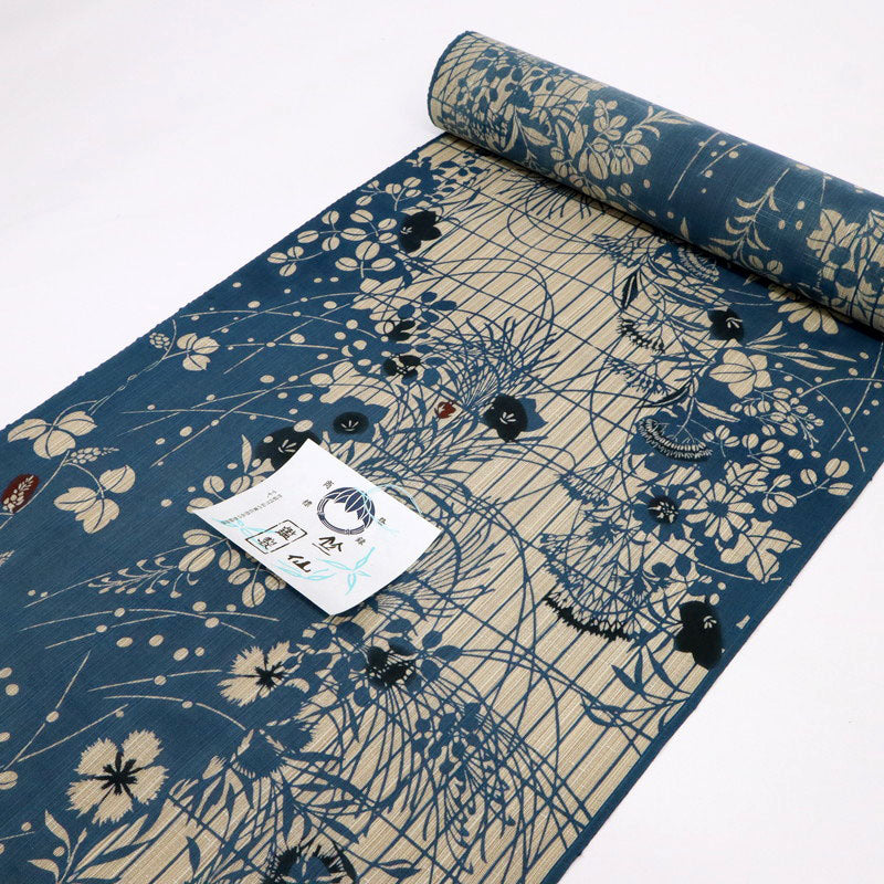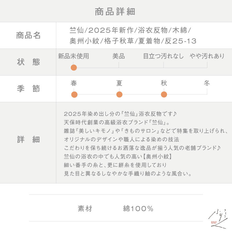 商品番号: 新品-竺仙-2025年新作-奥州小紋-浴衣反物-格子秋草-ベージュ-紺-カジュアル-長さ12m-反巾38cm-お仕立て可能-木綿夏着物-和装-きもの-反25-13