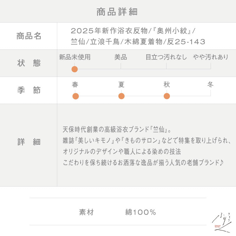 2025年の新作、染め出し分の『竺仙』浴衣反物です♪