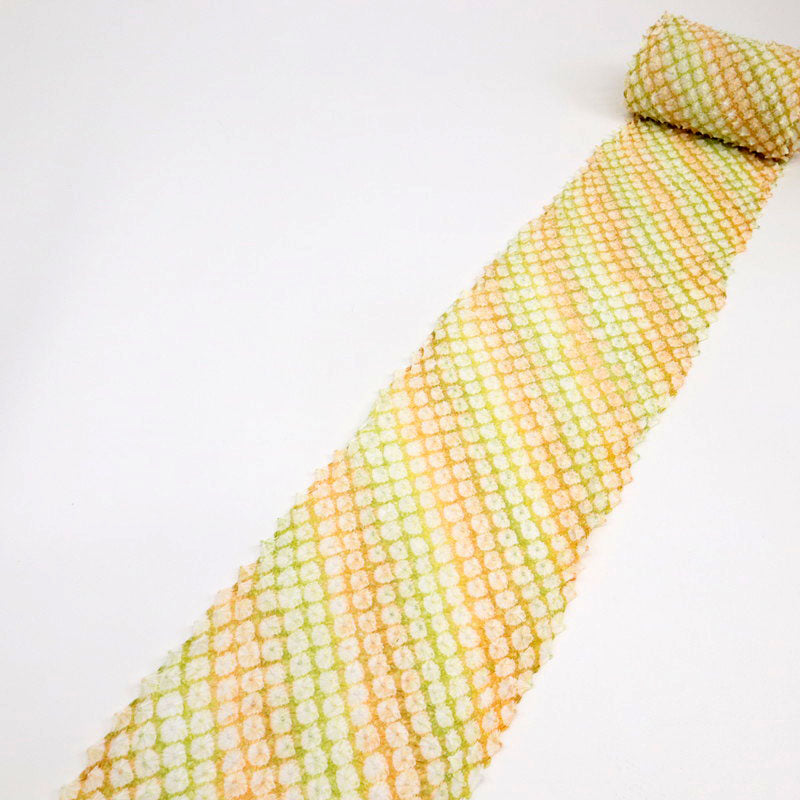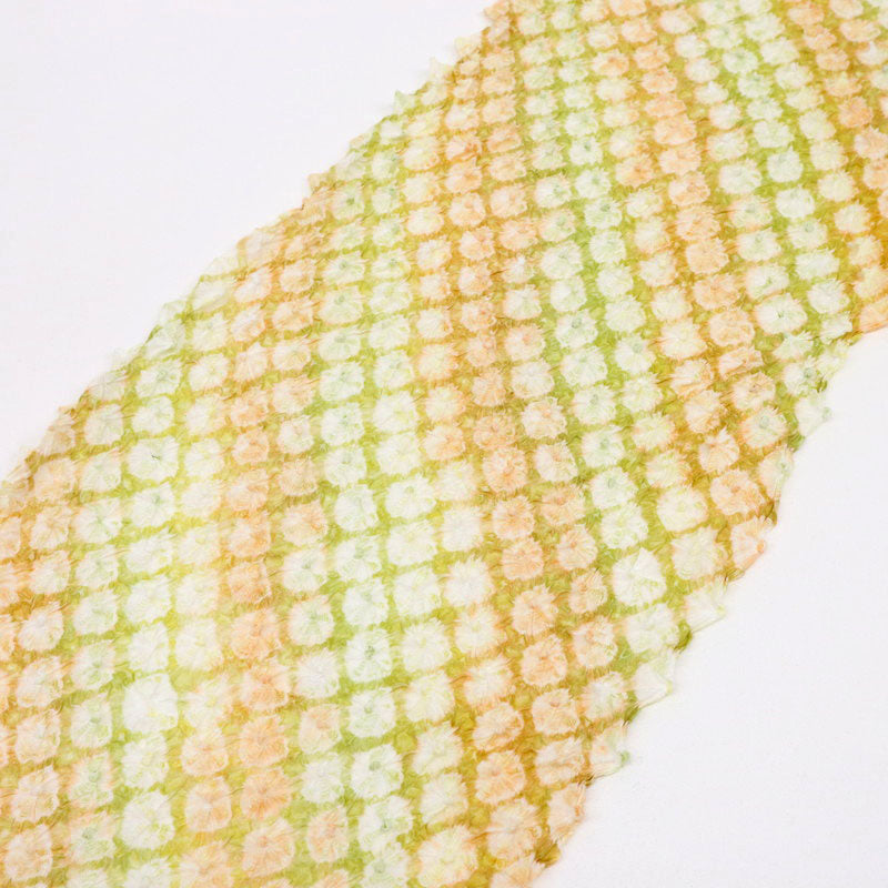 有松しぼり 浴衣反物『花しぼり』斜め縞 オレンジ カジュアル 木綿 夏着物 お仕立て可 和装 絞り きもの 反25-84