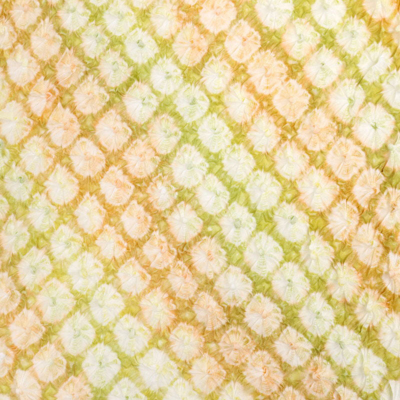 ひとつひとつ手仕事で生地を絞り染め上げる絞り染め。