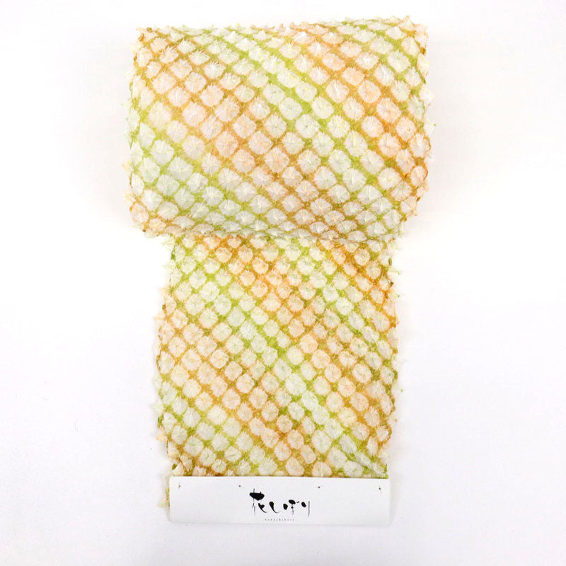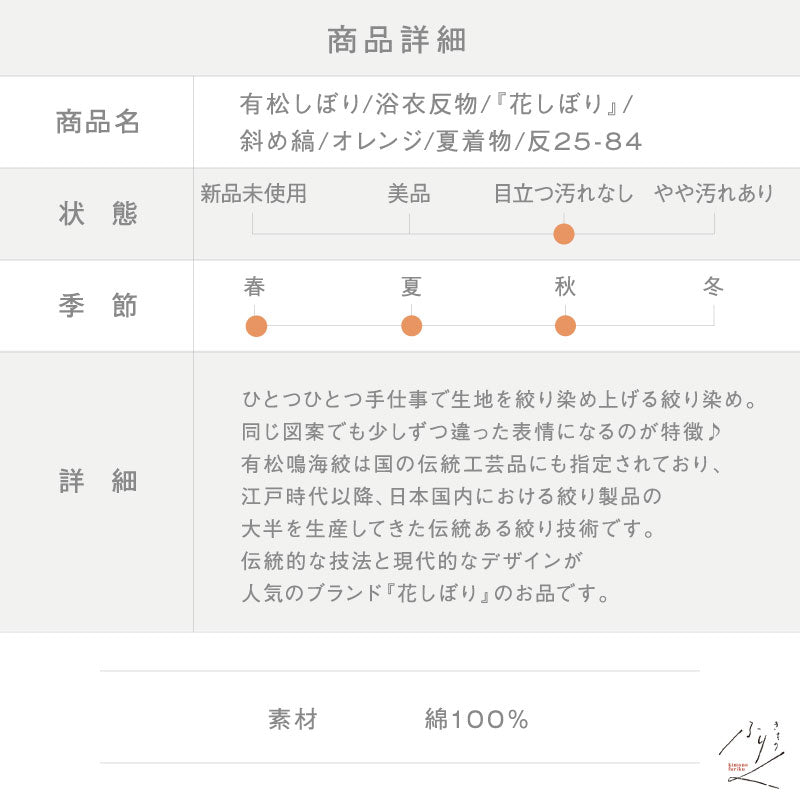 商品番号: 有松しぼり-浴衣反物-花しぼり-斜め縞-オレンジ-カジュアル-木綿-夏着物-お仕立て可-和装-絞り-きもの-反25-84