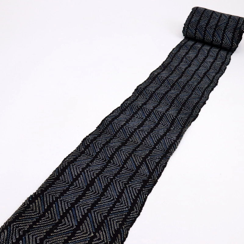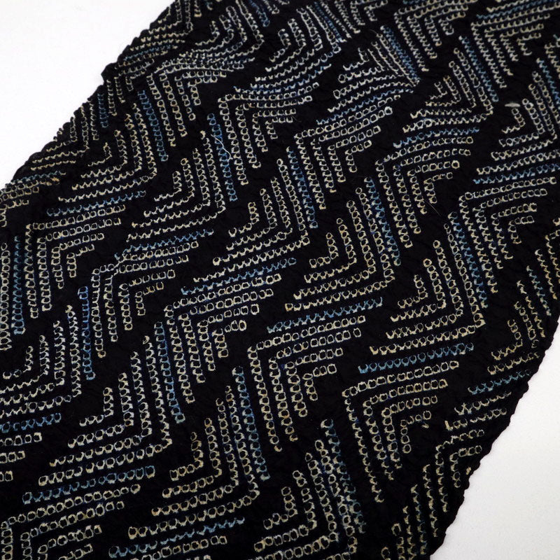 浴衣反物 手しぼり 縦ラインに幾何学 濃紺 カジュアル 木綿 夏着物 お仕立て可 和装 絞り きもの 反25-91