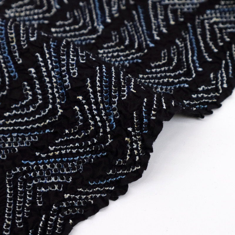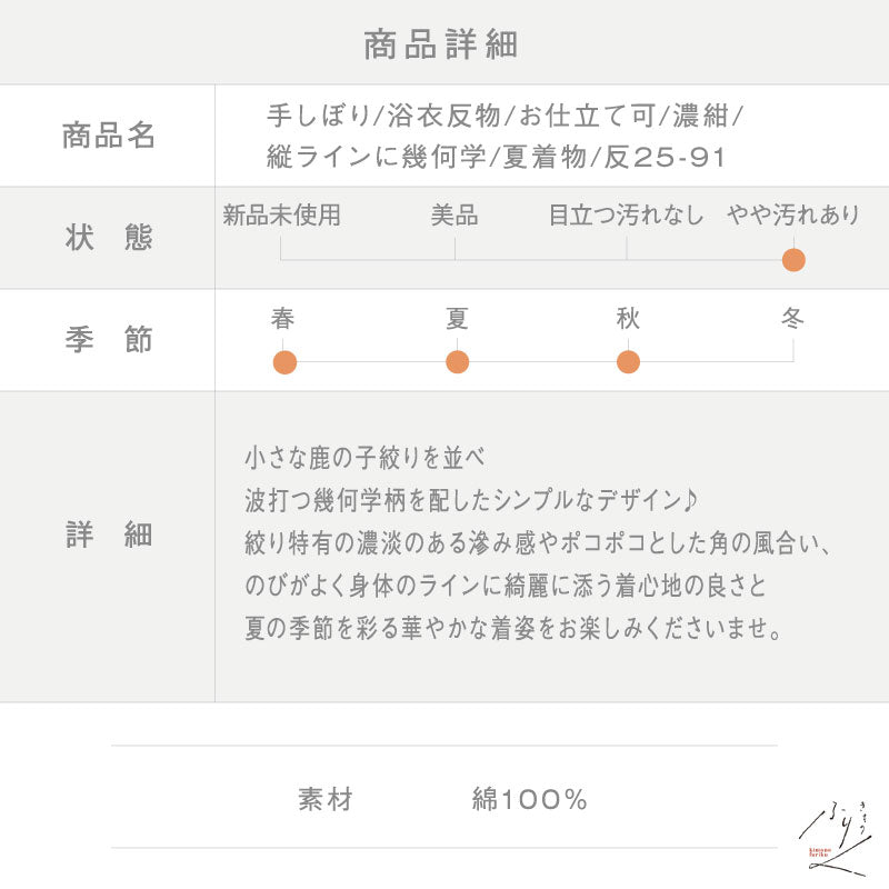 商品番号: 浴衣反物-手しぼり-縦ラインに幾何学-濃紺-カジュアル-木綿-夏着物-お仕立て可-和装-絞り-きもの-反25-91