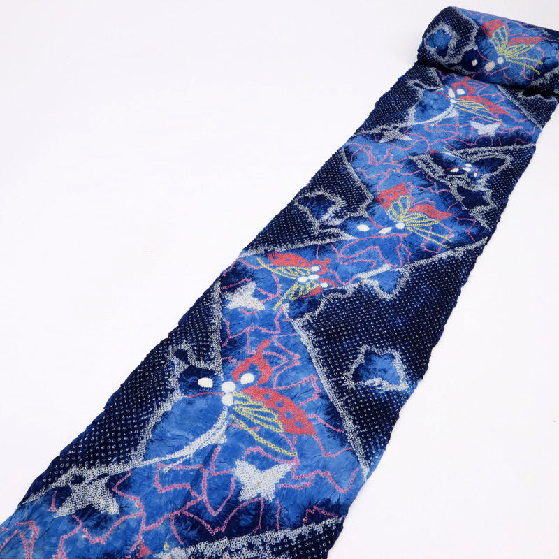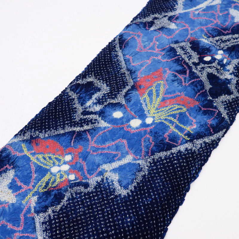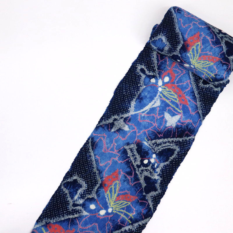 稲妻のようなジグザグ模様に舞蝶の鮮やかな染めが印象的♪