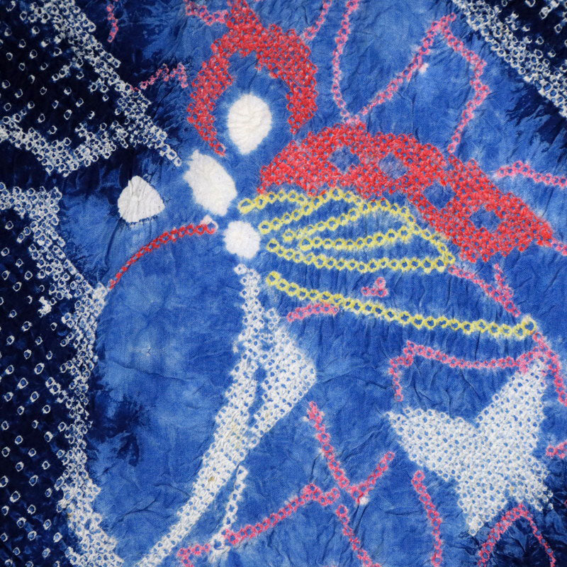 ひとつひとつ手仕事で生地を絞り染め上げる絞り染め。