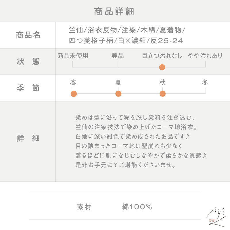 竺仙の注染技法で染め上げたコーマ地浴衣。
